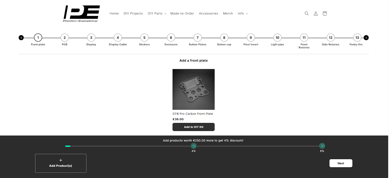 While their digital design files gave users the plan, the physical components (PCBs, CNC-cut carbon fiber, and LED modules) required a more structured shopping experience. Instead of forcing customers to hunt for individual screws and plates across multiple pages, Pokornyi Engineering sought to provide a "one-stop" assembly kit. By implementing a guided, modular bundling strategy, they transformed a complex technical parts list into an engaging, user-friendly project builder.
